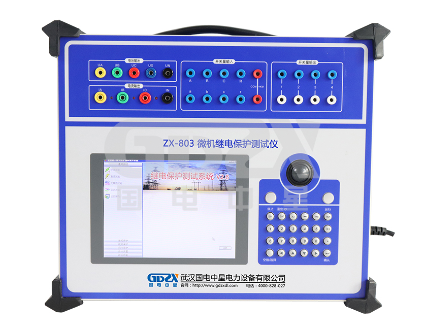 ZX-803三相繼電保護測試儀可對各種繼電器(如電流、電壓、反時限、功率方向、阻抗、差動、低周、同期、頻率、直流、中間、時間等)及微機保護進行檢定,并可模擬各種復雜的瞬時性和轉換性等故障進行整組試驗。